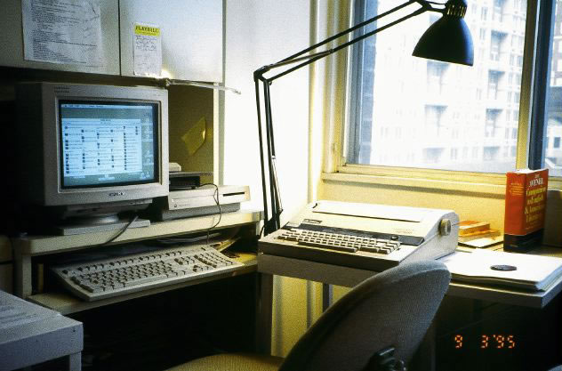 Paul's desk in his New York City apartment."My writing process begins as I wake up. I need an orderly desk, and I write best when I'm very organized. Then the madness of fiction can trickle out of me. I write only in the morning, except when I'm on a terrible deadline. Deadlines make me into a terrified zombie and I often think of committing suicide by chocolate."
