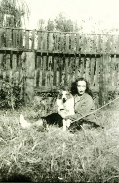 "Here's my mother with a collie when she tried to get rich quick because Lassie was the hot book and movie at the time. She bought a male and a female, mated them incessantly. No one wanted to buy the dogs so we ended up living with twenty-six collies.Previous | Home | Next |